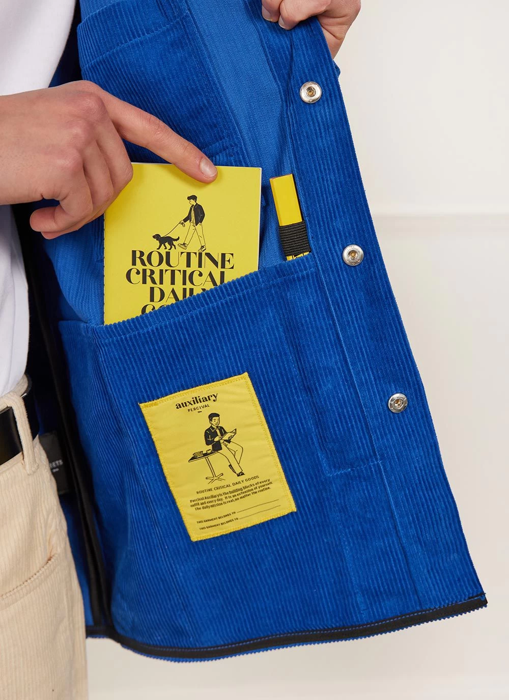 With technically drawn details on details including, pencil and note pad included inclosed in the interior, internal pockets, tonal snap buttons, Percival Auxiliary labelling and custom yellow trim. There is more than meets the eye.