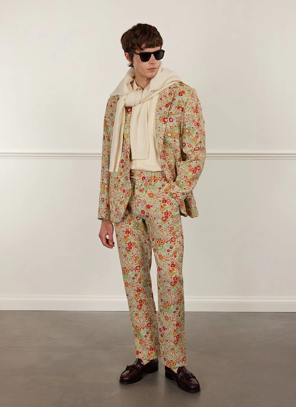 Percival tailoring, fine linen summer suits, seersucker options yes, tailored floral blazer the interest blazer of the summer, also yes. This floral blazer is the Adonis of nature.
