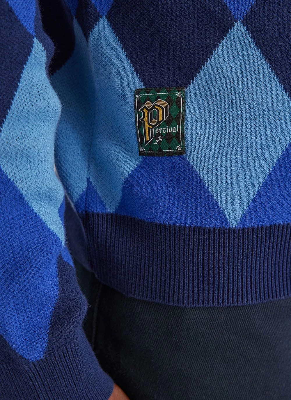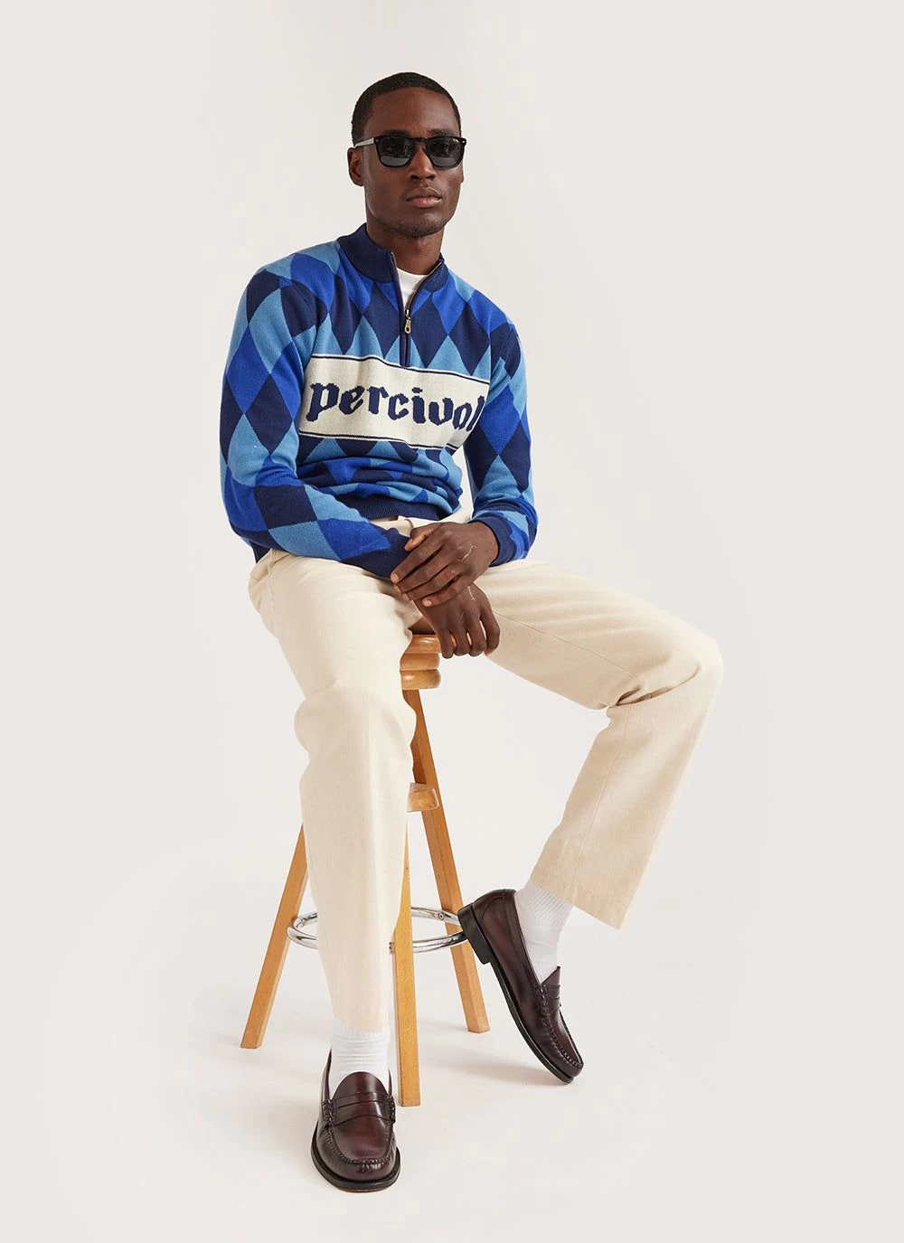 These fairytales, are more nightmares by modern standards. A character in traditional pantomime, the harlequin was typically masked and dressed in a diamond-patterned costume and came armed with some solid one liners, they were observational comics. They also created a pattern that we have jacquarded into a 100% cotton knit. A great autumnal knit for layering under heavy winter coats – no jokes.