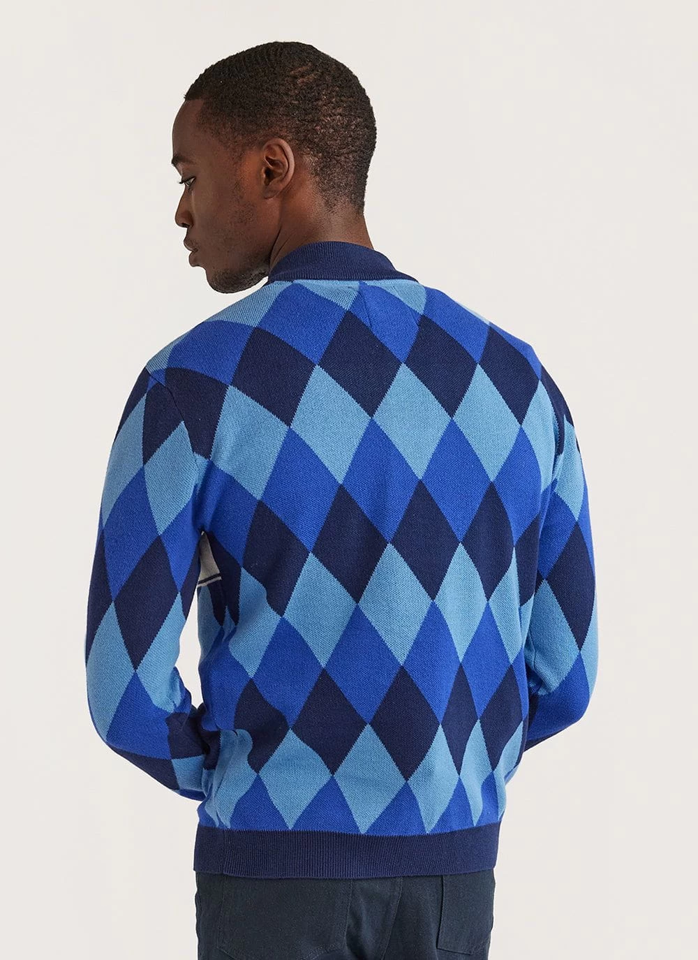 Men’s knitted quarter zip in a double bed jacquard design, finished with a ribbed neck, cuff and hem - Material: 100% Cotton