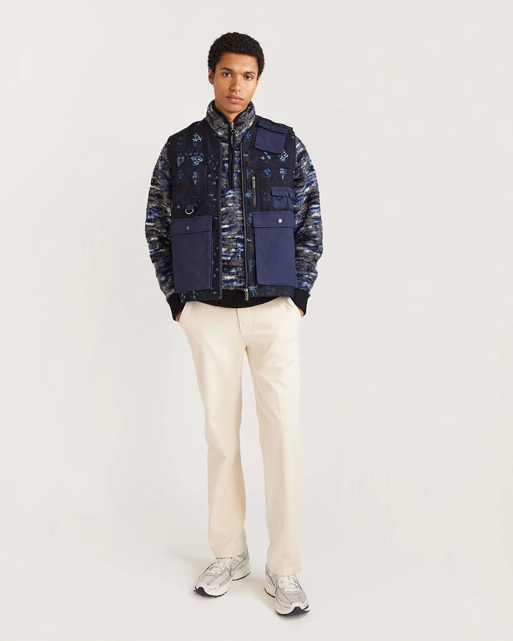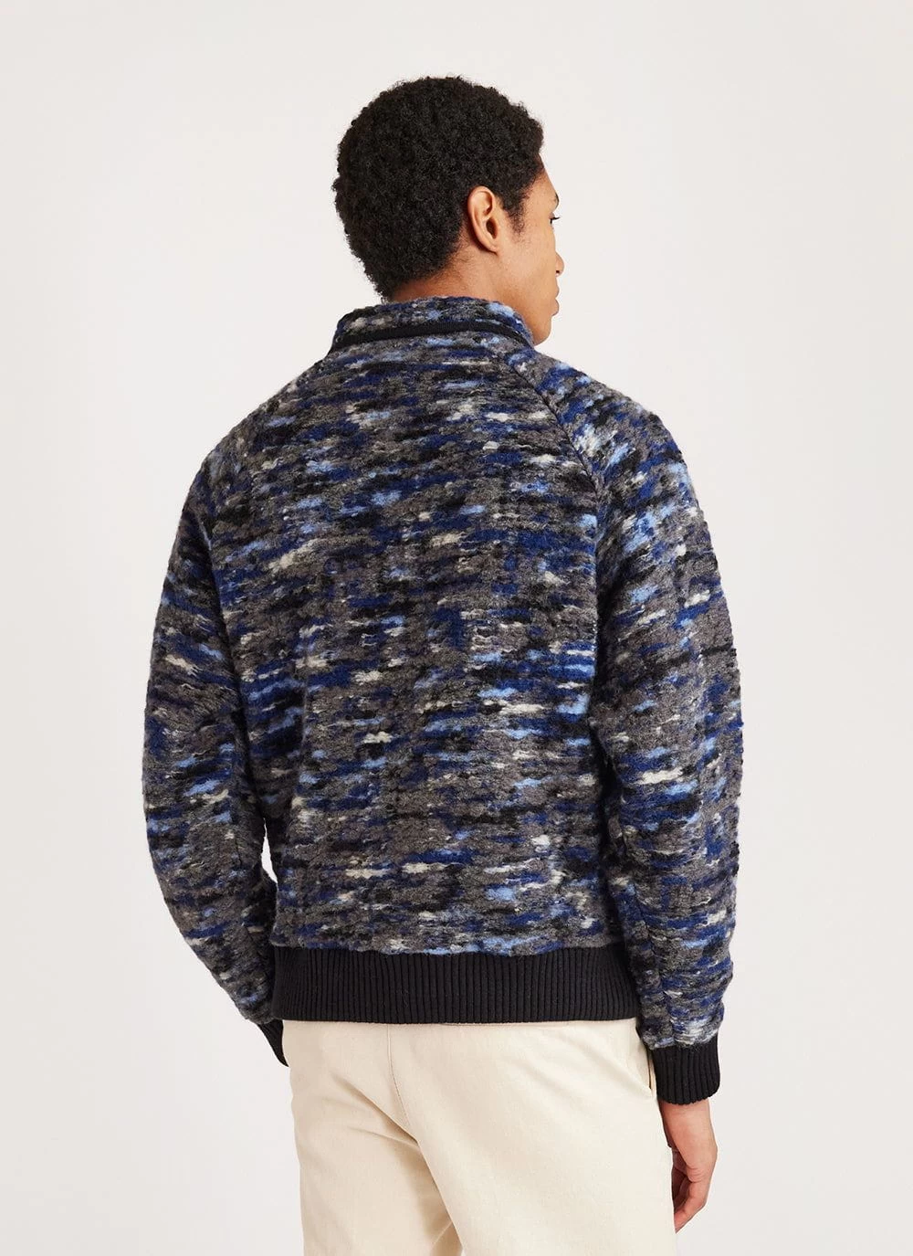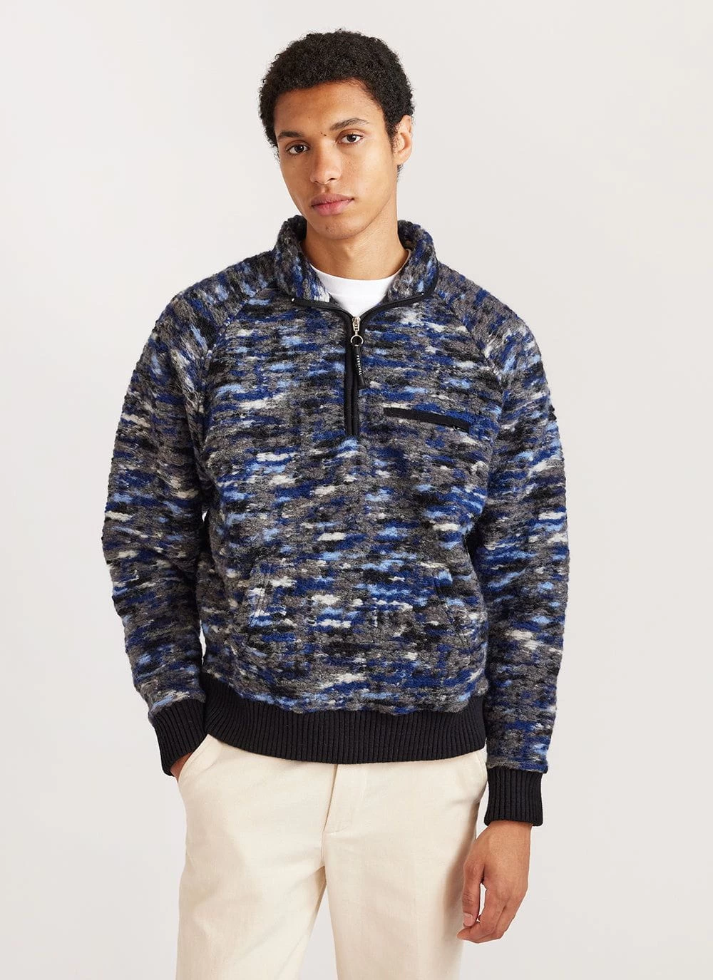 - Features:Â Men’s knitted fleece made from a premium Italian wool blend with jacquard weave. Finished with rib on sleeves and cuff and chest zip pocket