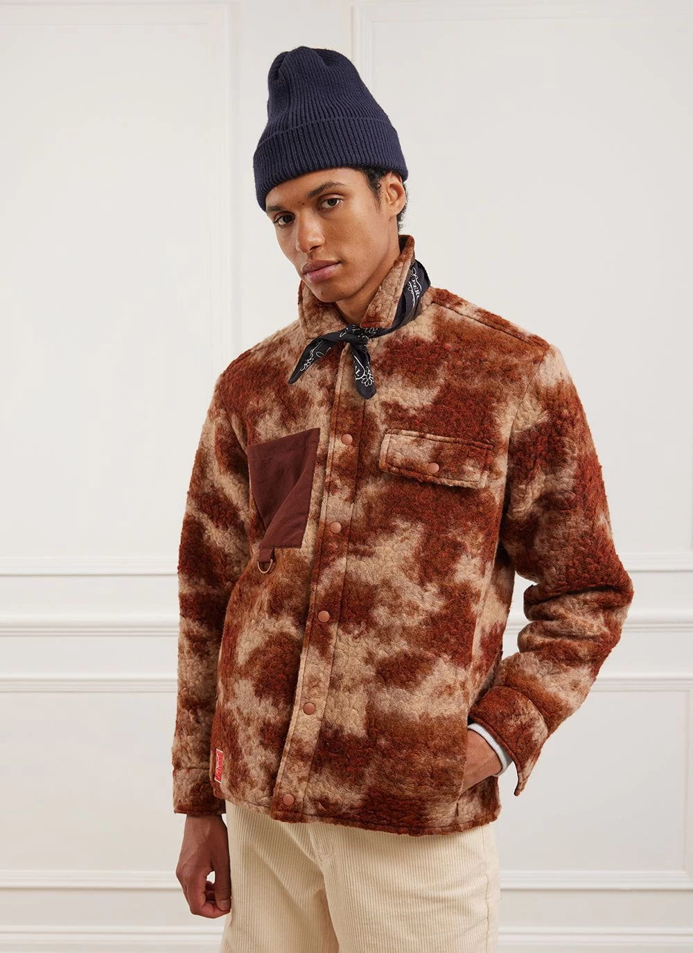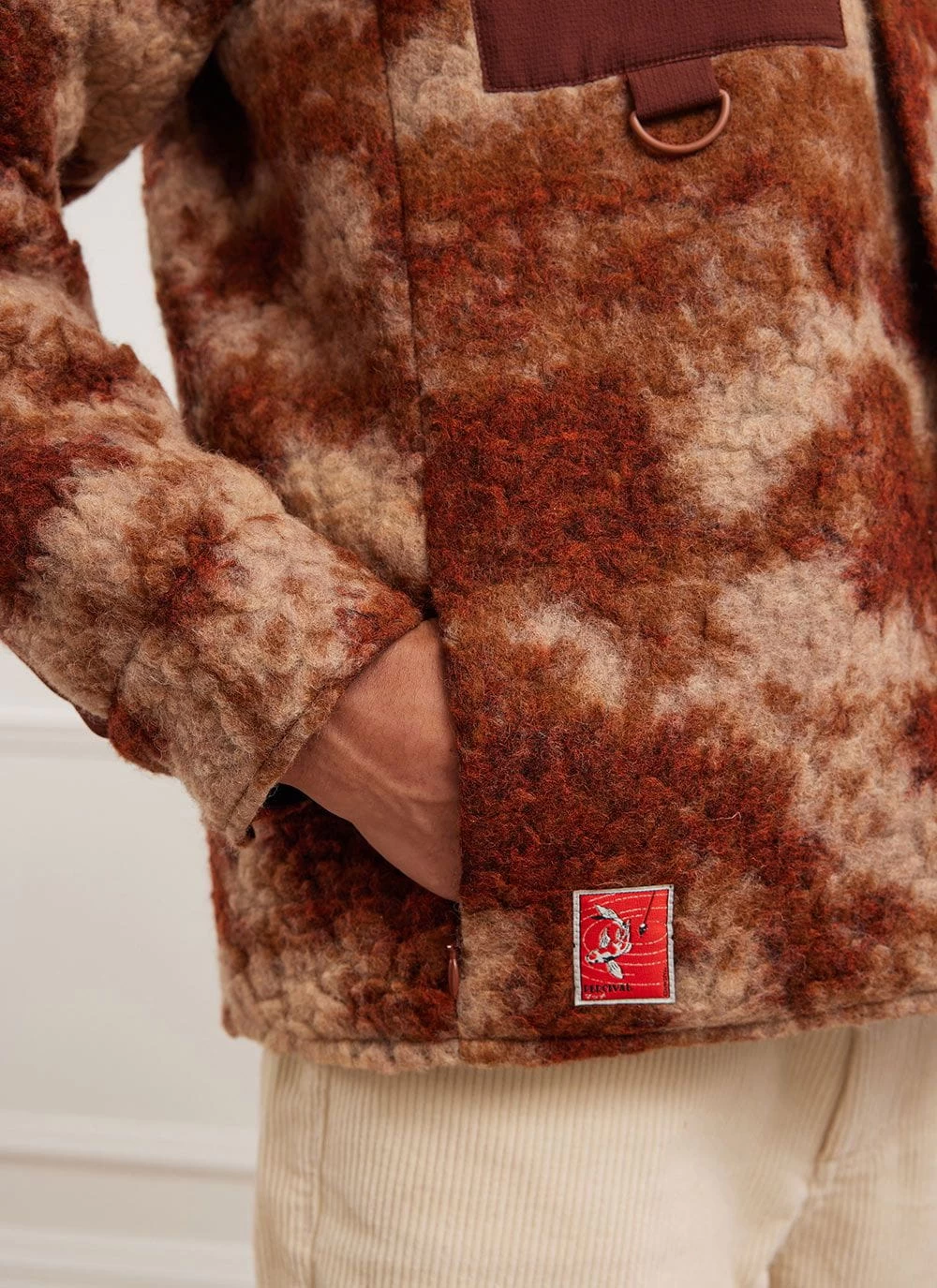Features include of course the durable fleece fabric – not quite the golden fleece but a wool blend that has a natural water resistance, a smart sheep recycled polyester with designer designed artwork in our London studio which was inspired by shells. Pockets on pockets, features on features, it’s layered, it’s your winter warmer overshirt a shirt for life. It is your friend.