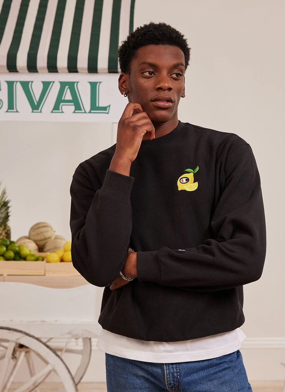 Champion and Percival new autumn winter embroidery season. Hand drawn illustrations, digitised, then embroidered onto heavy weight reverse weave Champion hoodies, sweats and quality tees. Celebrating some of the items you may find at your local corner shop and the fine design and detail that can go into the labelling and packaging of these items; the art of convenience. Limited edition Percival x Champion sweatshirt, when life gives you lemons… find the tequila and salt.