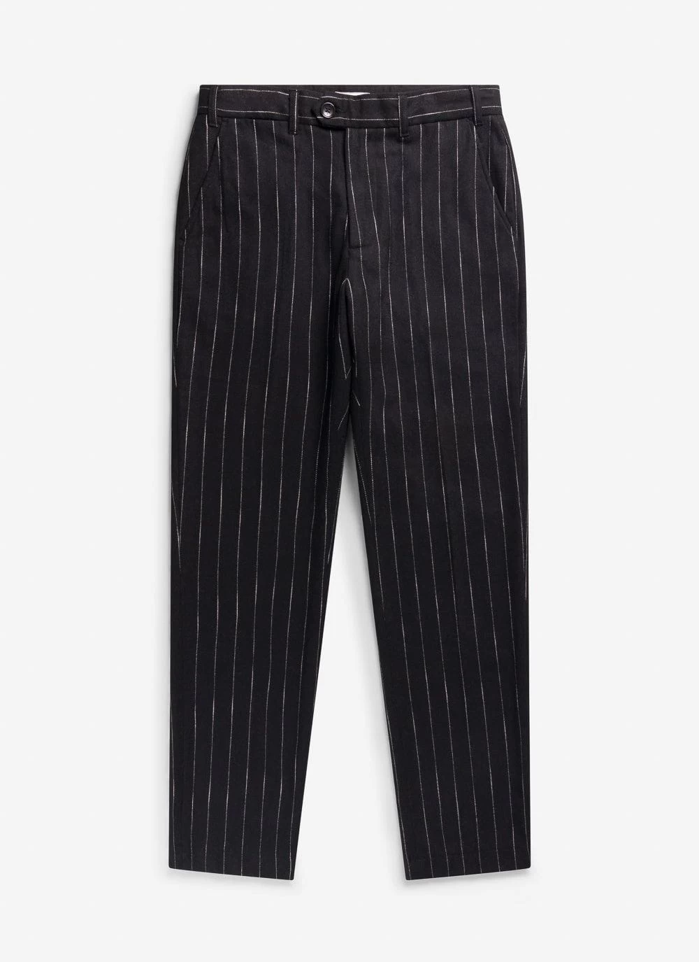 - Features:Â Men’s Pinstripe Trousers with New improved straight leg fit and increased body width.