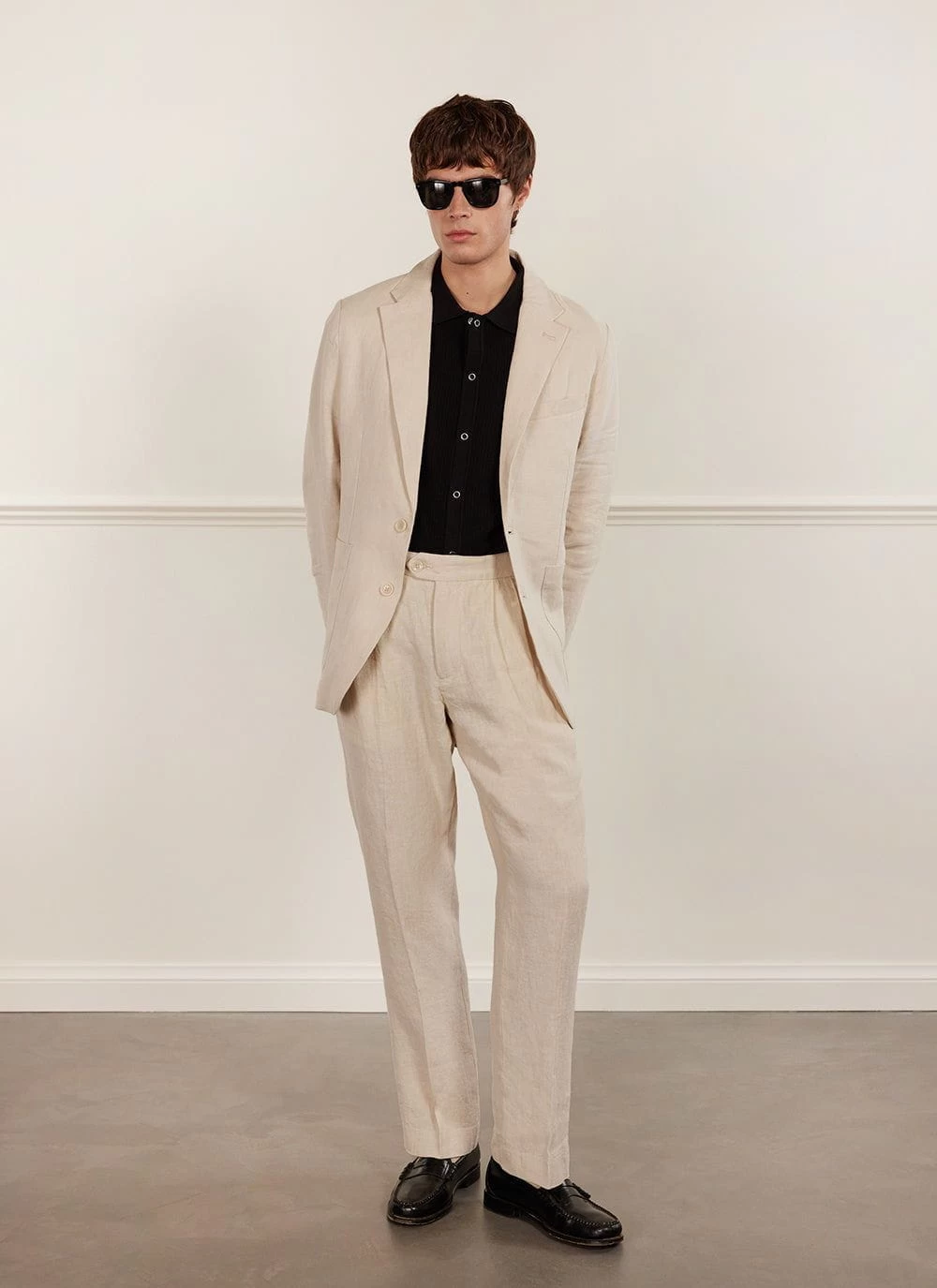 Looking for a match? These Linen Trousers come with a matching cream Linen Blazer. Alternatively, take a look at our Suiting Collection.