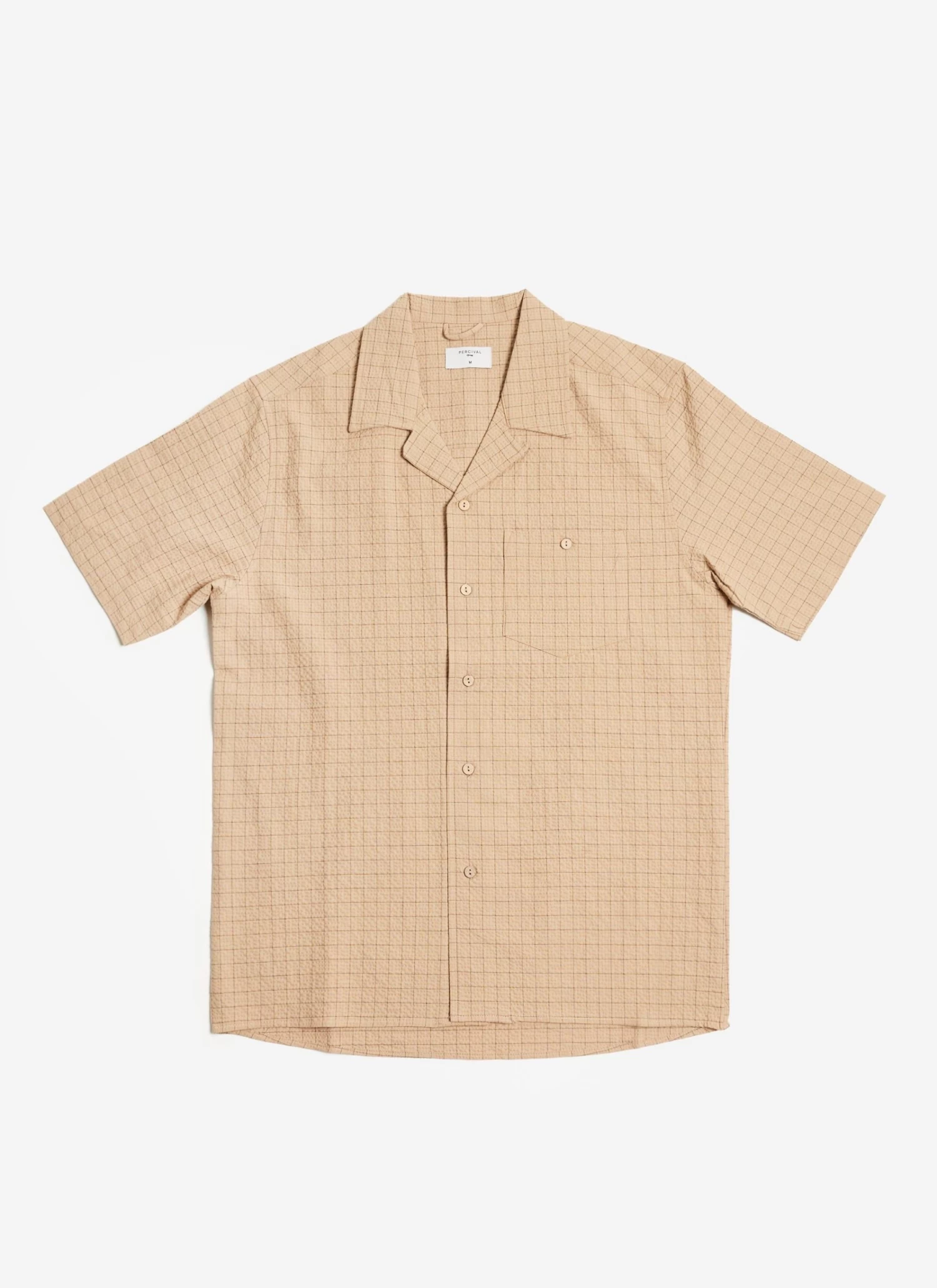 Men’s Cuban Shirt with Short Sleeves and Windowpane Seersucker print - Material: Cotton Seersucker