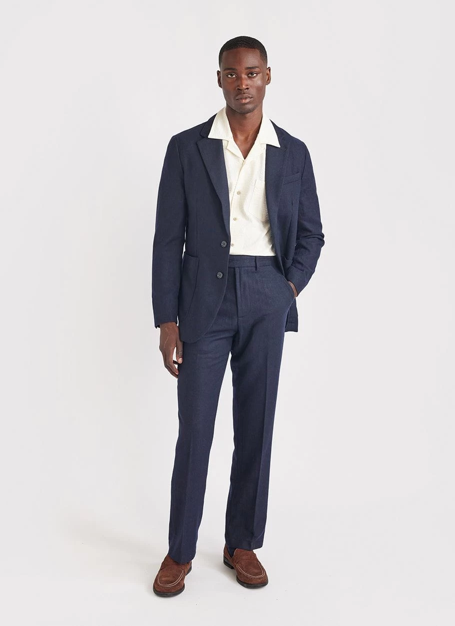 With deconstructed construction meaning it is lightweight but still holds it shape, internal pockets, sleeve lining, matching trousers (it’s a suit) it will go wherever you take it.