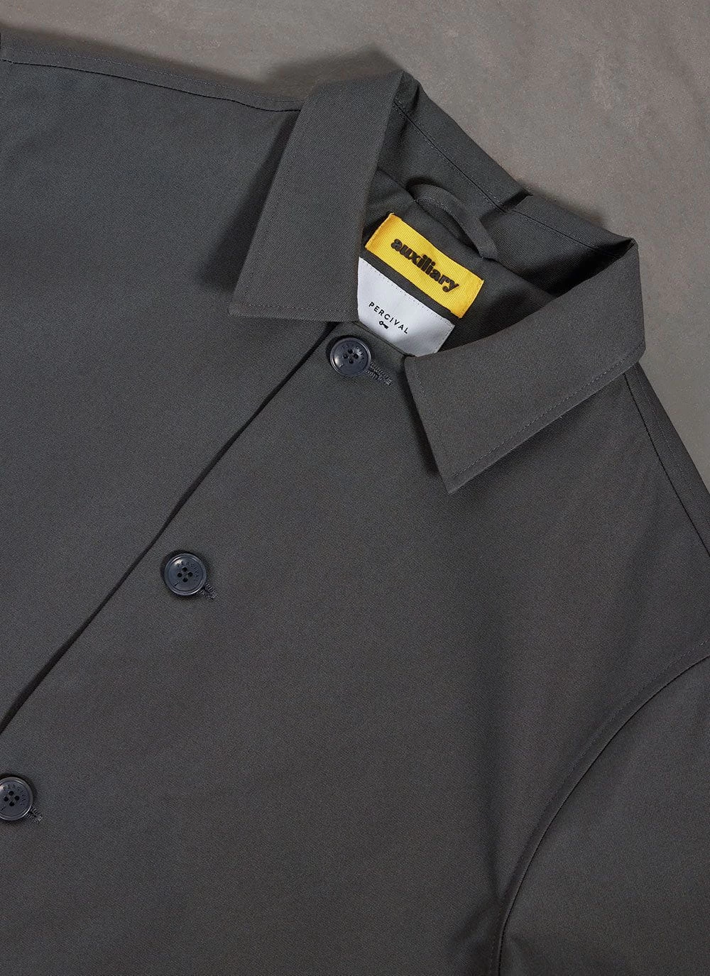 Percival Auxiliary yellow binding and branding throughout. A jacket for life with a very reasonable price per wear when you wear it on the daily. This waterproof trench is part of the building blocks of every outfit of every winters day.