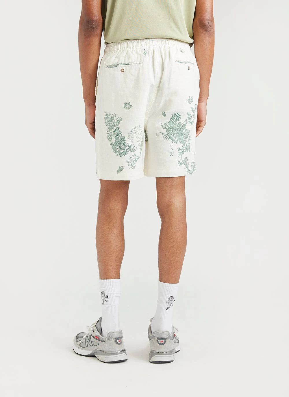 These shorts in popular linen add an attractive and understated colour to any outfit. A comfortable fit and cut just above the knee they are perfect for the park or pair with one of our cuban shirts to elevate your holiday look. They feature a drawstring waistband with side jet pockets and back buttoned patch pocket. Tidy.