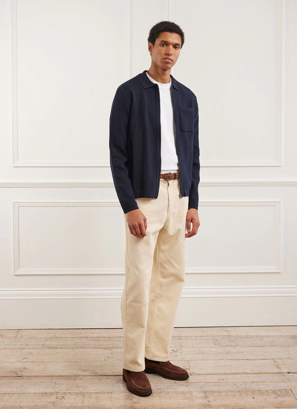 Percival zip cardigan, cardigan of course come from the Earl of Cardigan. An Earl is a Nobleman. My name is not Earl and this may not be a noble cardigan but more of a nice easy to wear, transitional seasonal cardigan. Knitted in a classic true to size fit, made from 100% cotton. Easy
